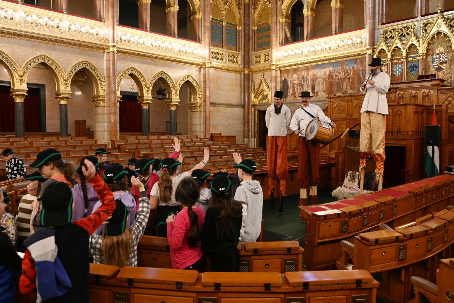 A Delegációs teremben a kis vendégek interaktív zenei foglalkozáson vehettek részta Magyar Zene Háza közreműködésével.